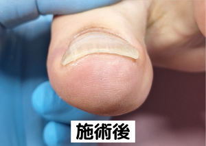痛みがなくなった段階で施術をやめてしまうと、根元の巻き込みが残存し、数か月後に再発する可能性が高まります。