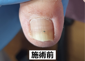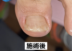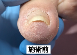 この女性の場合、爪自体の硬さと巻き込みが強く、皮膚への負担も大きかったため、単なる爪切りだけでは再発を防げない状態でした。
