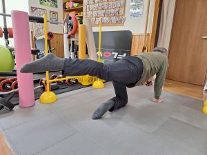 施術だけでなく、再発予防・機能改善を目的とした体幹トレーニングも夜間に実施しています。