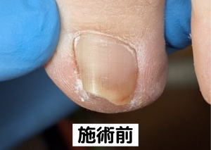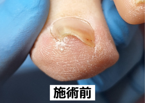 結果として、爪は正常に伸びなくなり、爪の周囲の皮膚が盛り上がって爪が埋もれ、歩くたびに爪が肉に食い込む強い違和感と痛みを訴える状態となっていました。
