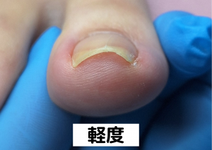 軽度:爪の端がわずかに内側へ湾曲。痛みはほぼなく、赤みや腫れも目立たない