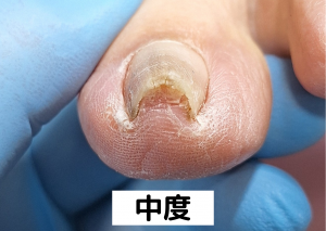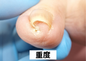 中度:爪の食い込みが進行し、歩行時や靴の圧迫で痛みが出る。皮膚の炎症を伴うことが多い